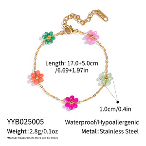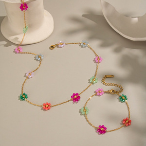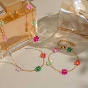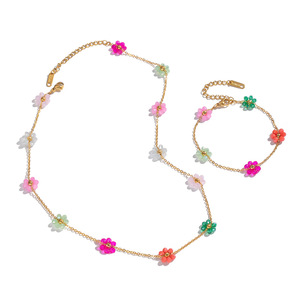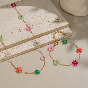 夏凌可爱甜美彩色花朵项链手链不锈钢镀18K金气质时尚饰品批发