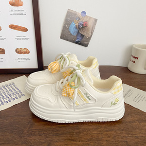 郁金香厚底小白鞋女鞋2025秋季新款花朵小众设计韩版透气运动板鞋