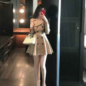 【1432人收藏】卡其色风衣连衣裙女秋季高级感长袖裙子双排扣收腰