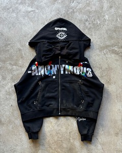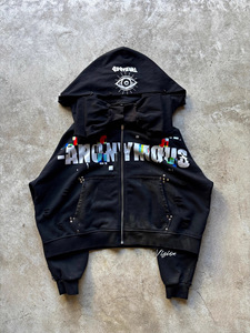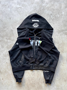 重磅设计感欧美宽松连帽衫个性嘻哈印花烫钻潮流男女同款卫衣