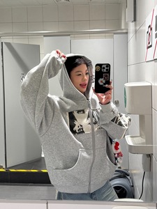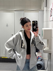 2025美式宽松开衫街头外套风朋克灰色连帽卫衣女秋同款冬潮牌重磅
