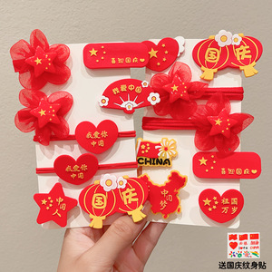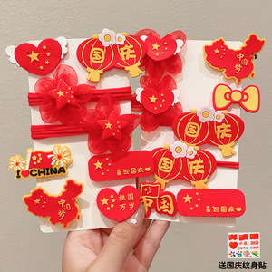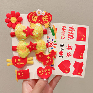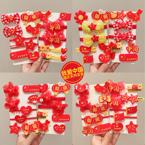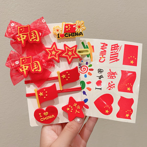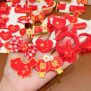 十一国庆节红色发饰儿童橡皮筋发圈女童五星红旗发夹节日爱心头饰