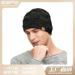 跨境秋冬季加厚毛线帽内里加绒 保暖时尚宽松美式街头风针织帽子