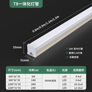 t5一体化led日光t8灯管1米2超亮长条灯三防净化灯家用厂房支架灯