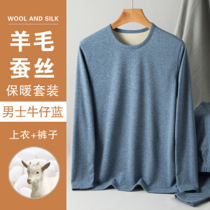 无痕德绒羊毛蚕丝保暖内衣套装女士冬季加绒加厚秋衣秋裤男士打底