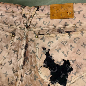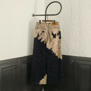 正确版本驴家2025SS秋季新款火烧云植绒牛仔长裤全幅经典老花图案
