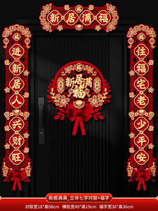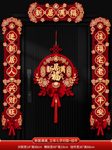 七字/进宅大吉+新居满满_镂空双层对联+福字挂件