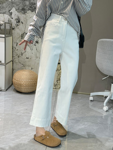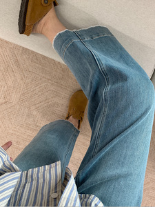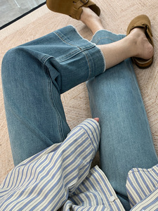 早秋战裤!四面弹高腰显瘦直筒牛仔裤女九分窄版垂感小个子阔腿裤