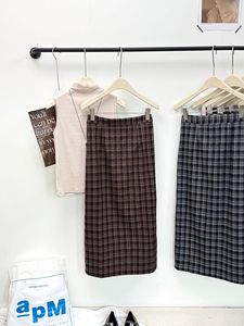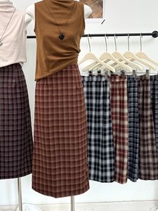 撞色格子开叉法式中古腔调复古温柔风格纹高腰秋冬毛呢半身裙