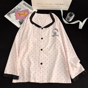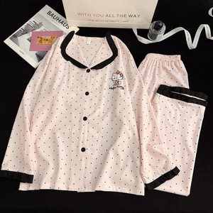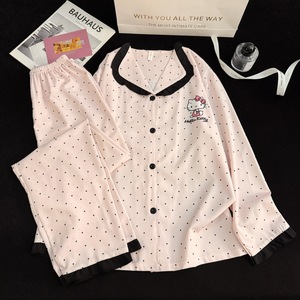 韩系新款卡通花边波点冰雪丝睡衣女秋冬春秋长袖长裤家居服套装