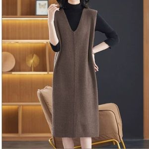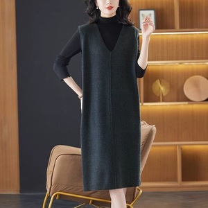 鸡心领针织连衣裙春秋新款气质显瘦毛衣裙长款过膝大码马甲背心裙