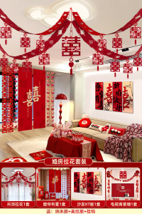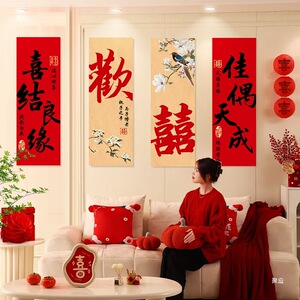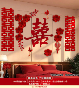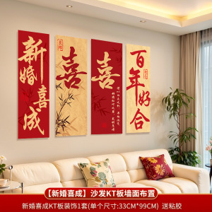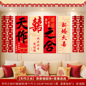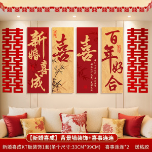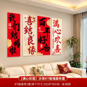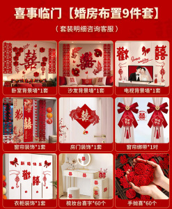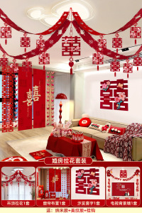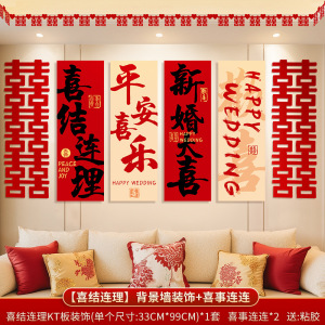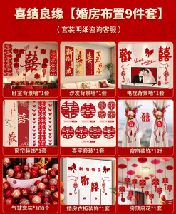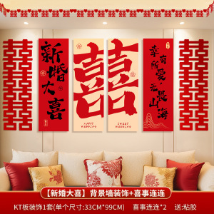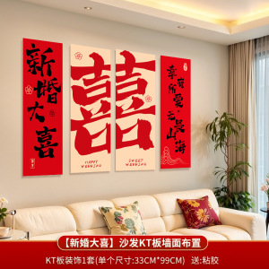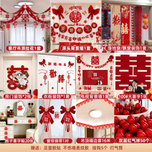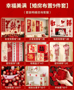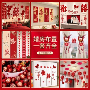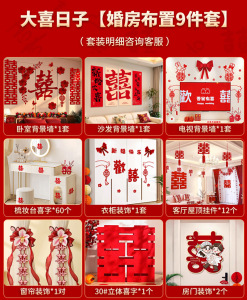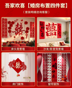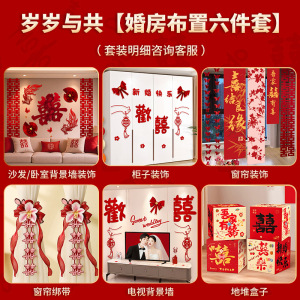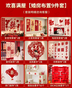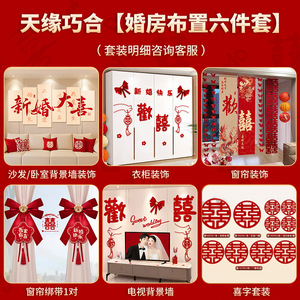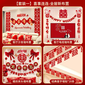 婚房布置套装男女方新房卧室结婚装饰客厅沙发背景墙喜字板墙贴
