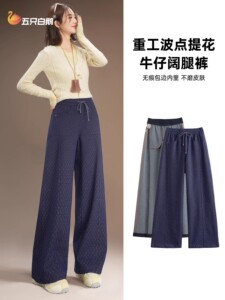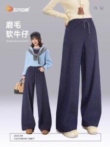 五只白鹅2025秋冬季松弛感微喇直筒裤子高腰显瘦磨毛软牛仔阔腿裤