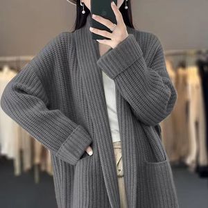 韩版秋冬季慵懒风粗线针织女毛衣开衫气质中长款宽松女外套上衣