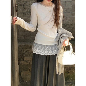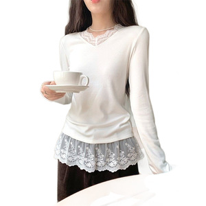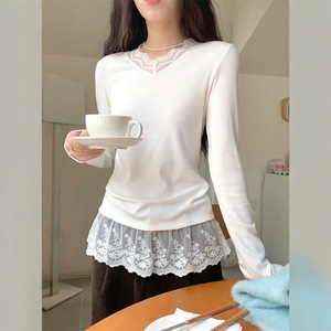 蕾丝打底衫女2025新款小衫内搭高级感秋长袖气质修身T恤纯欲上衣