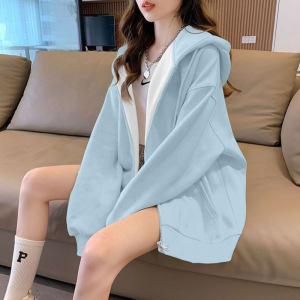 2025连帽卫衣女士秋冬季新款宽松显瘦大码胖妹妹运动拉链开衫外套