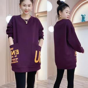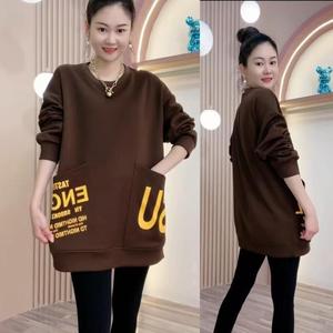 大码双口袋圆领卫衣女2025春秋新款韩版洋气时尚宽松显瘦外穿上衣