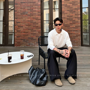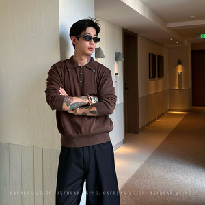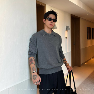 OXFREAK「老钱风 五粒扣」纯色针织长袖polo衫男韩系内搭翻领t恤