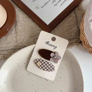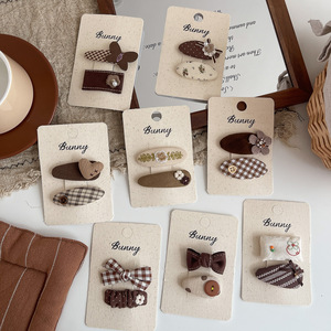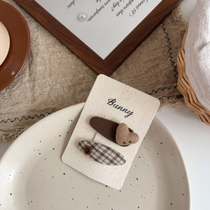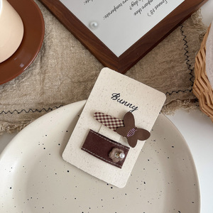 早秋美拉德风格纹蝴蝶结儿童发饰百搭纽扣爱心发夹侧边刘海夹发饰