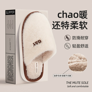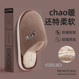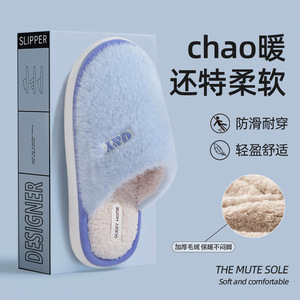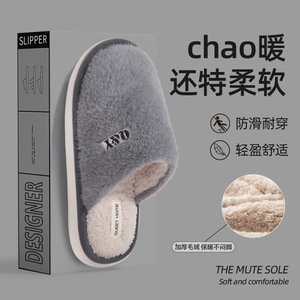 棉拖鞋女情侣居家踩屎感防滑厚底毛绒室内保暖拖鞋男冬季家居家用