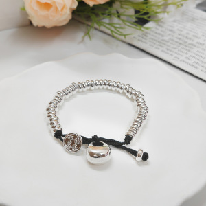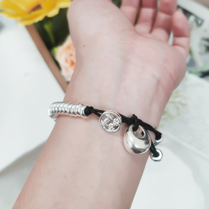 新中式国潮手串手工红绳平安喜乐盘缠小银坨手链小众高级手工编织