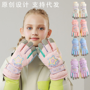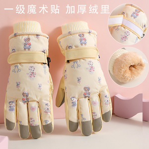 冬季可爱加厚小熊手套保暖加绒防风防水滑雪手套可触屏骑行棉手套