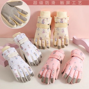女滑雪手套小熊米色