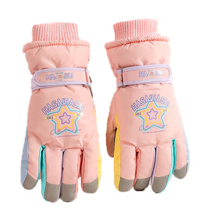 女滑雪手套五星粉色
