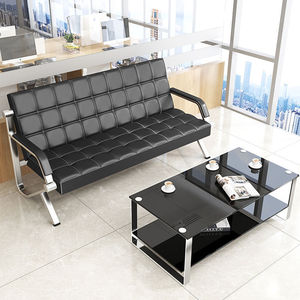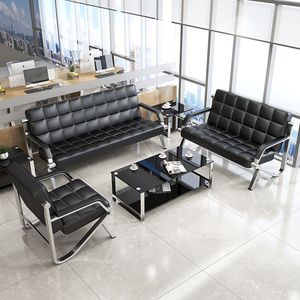 办公沙发简约现代铁艺商务办公会客接待三人沙发中间茶几组合沙发