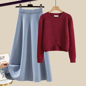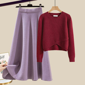 大码气质秋冬套装女穿搭半身裙紫色毛衣穿搭2025年新款针织一整套