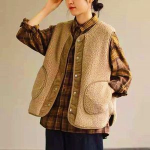 2025新款双面穿羊羔毛马甲女秋冬文艺宽松无袖灯芯绒正反两穿外套