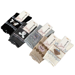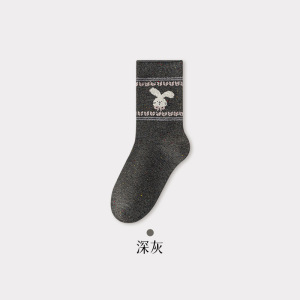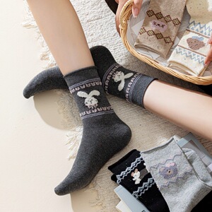 复古卡通点子纱加厚女袜透气弗尔岛提花秋冬季保暖百搭中筒袜子女