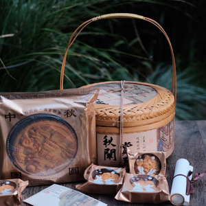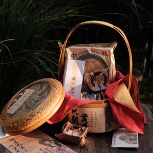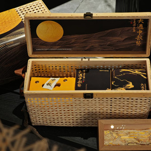 国风复古竹篮礼盒中秋月饼水果提篮伴手礼蛋黄酥糕点伴手礼篮