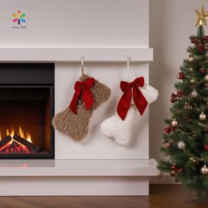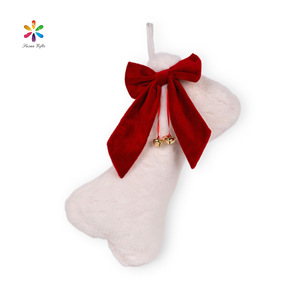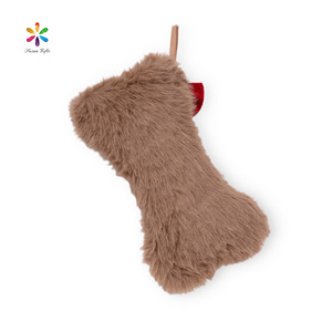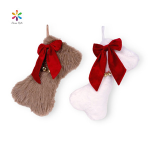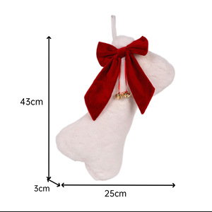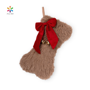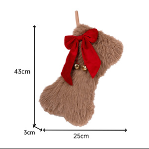 圣诞装饰品礼品圣诞祙礼物袋铃铛红色蝴蝶结骨头长毛绒毛褐色白色