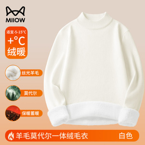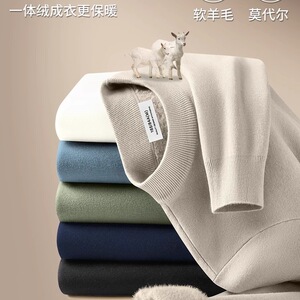 猫人650G羊毛莫代尔一体绒半高领毛衣男保暖内搭针织衫秋冬加绒厚