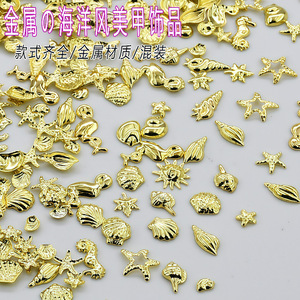 公斤装混批海洋风金属迷你海星金色指甲dly配饰海螺贝壳美甲饰品