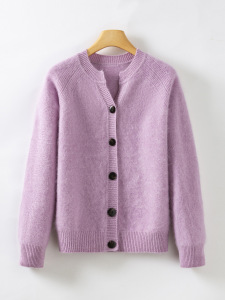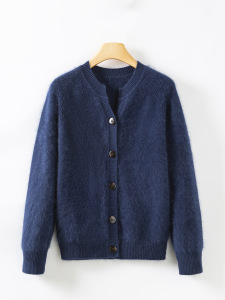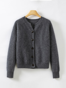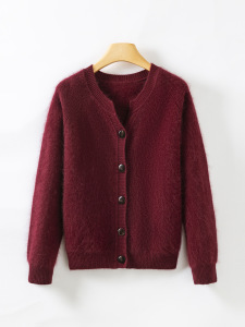 濮院秋冬新款V领羊毛羊绒拉毛针织开衫女宽松毛衣重磅360g厚款
