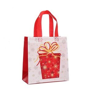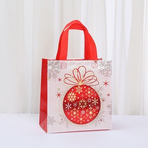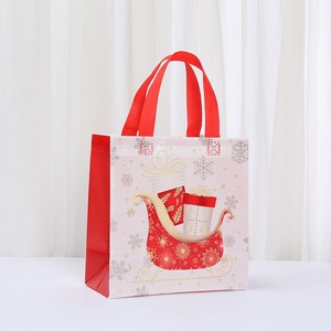 跨境圣诞无纺布手提袋红色防水覆膜商场购物袋卡通节日伴手礼袋