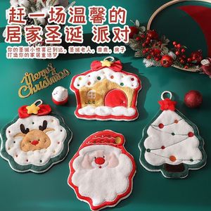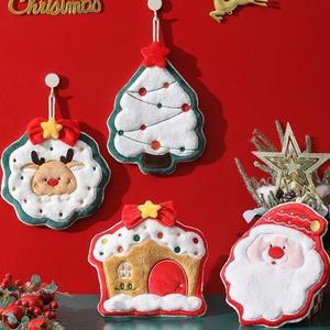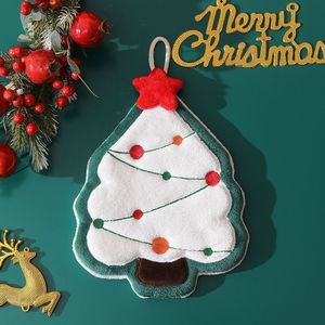 珊瑚绒圣诞树擦手巾吸水速干厨房卫生间擦手毛巾挂式毛毡礼品礼物