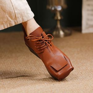 复古及踝靴深口鞋2025秋冬新款女鞋头层牛皮系带中跟防水台脚踝靴