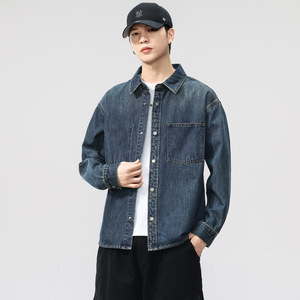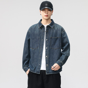美式复古经典工装牛仔衬衫男长袖2025秋季宽松翻领休闲衬衣外套潮