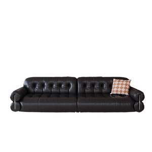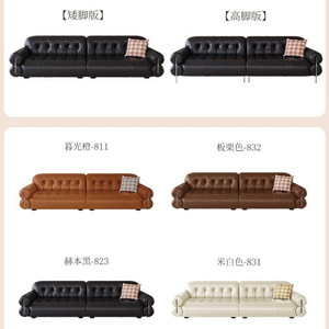 法式沙发黑糖云朵沙发中古风沙发客厅复古大黑牛头层牛皮直排沙发