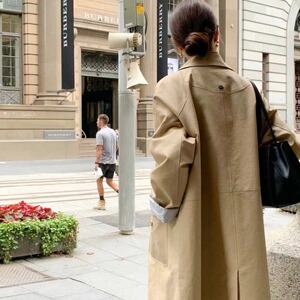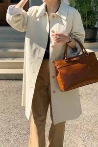 尺寸已更新 韩国CHIC早秋新款简约休闲百搭双口袋单排扣风衣外套