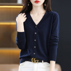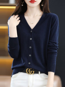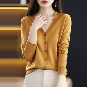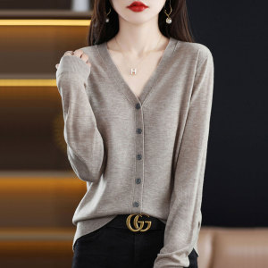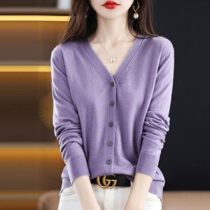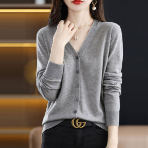 【厂家直供】时尚新款V领针织开衫外搭毛衣女春秋薄款宽松上衣潮
