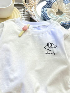 儿童秋款纯棉长袖T恤女童圆领休闲上衣 宝宝花边纯色打底内搭童装