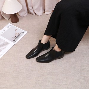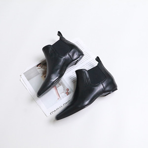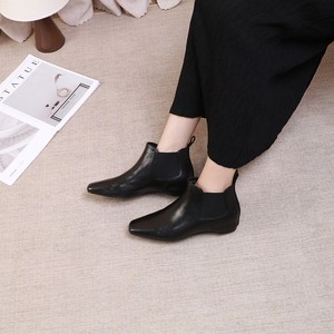 2025新款秋冬新款切尔西靴小方头复古时髦真羊皮短款女靴子时装鞋