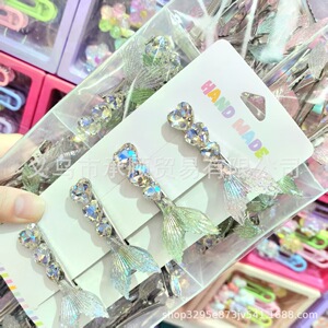 韩式新款爱心水钻人鱼姬鱼尾巴鸭嘴夹精致甜妹少女边夹小学生发卡
