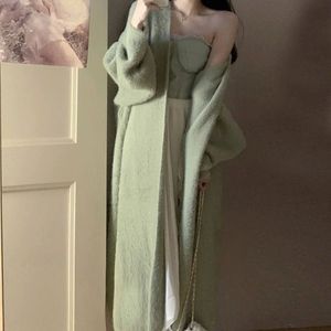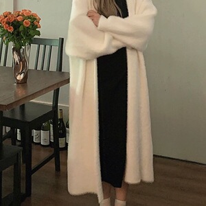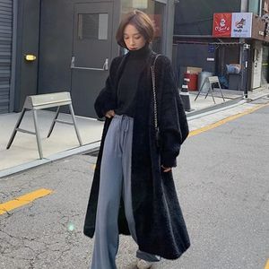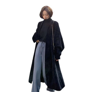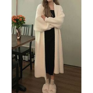 软糯针织开衫毛衣女秋冬新款宽松大码显瘦慵懒风仿水貂绒长款外套
