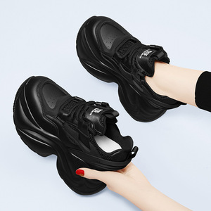 运动鞋子黑色厚底老爹鞋新款内增高女鞋轻便百搭休闲女士单鞋