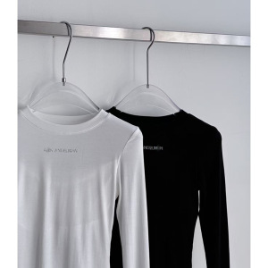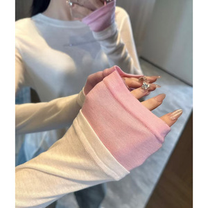 早秋ann小众设计套头修身显瘦薄款烫钻长袖粉色撞色打底上衣天丝